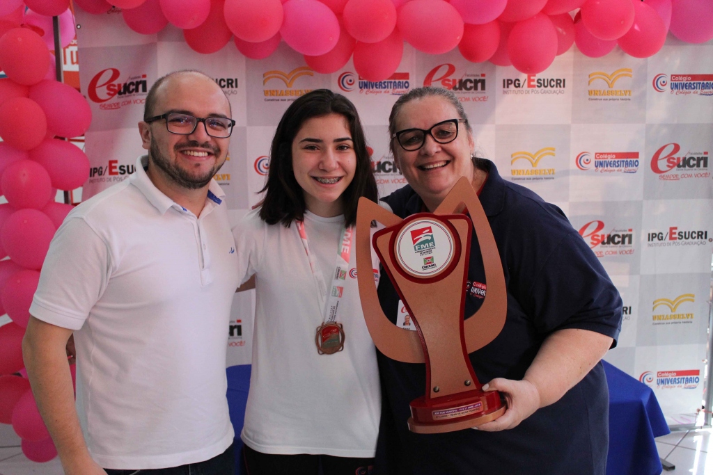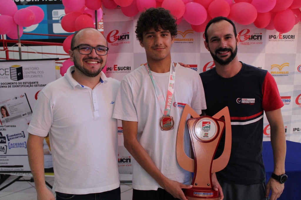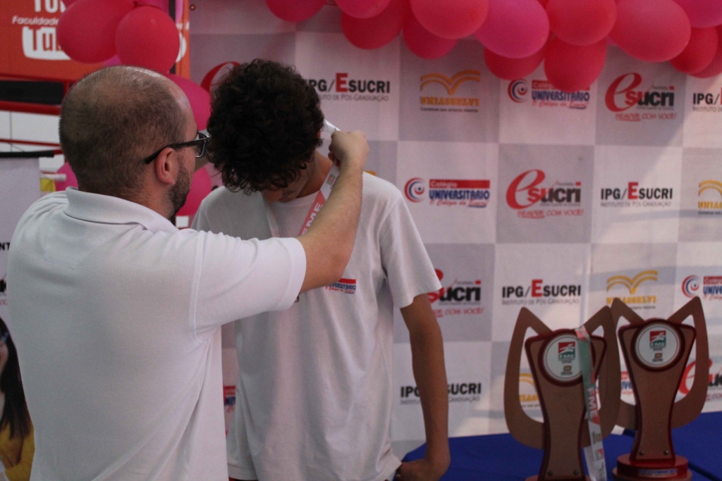 O presidente da Fundação Municipal de Esportes, Nícola Martins, entregou as medalhas para os alunos, Hemily Cardoso Costa e Erick Eduardo Da Silva Schmitz que ficaram respectivamente em 3º lugar no tênis de mesa feminino e 3º lugar no xadrez masculino. Além das medalhas foram entregues para o professor de Educação Física, William Aguiar, e para a diretora do Colégio Universitário, Nena Benedet Tautz, os troféus que ficarão expostos no colégio.