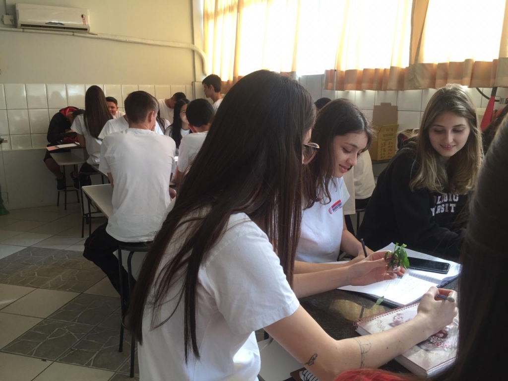Durante a atividade os alunos trabalharam os orgãos vegetativos, conteúdo de Botânica abordado anteriormente em sala de aula.