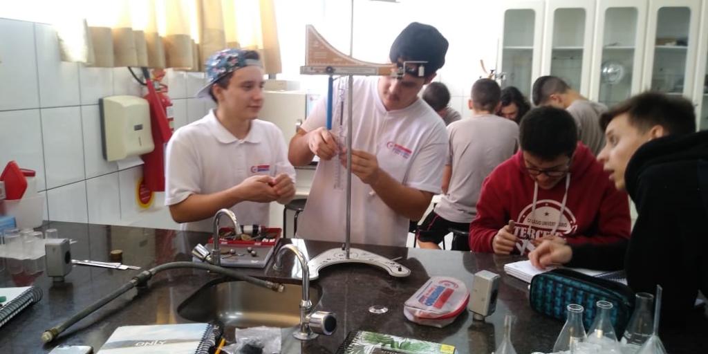 Os alunos do Terceirão tiveram uma aula prática de Física com o professor César. A aula constou com a prática referente as leis de Newton através da lei de Hooke, onde foi verificado o comportamento das molas e calculada a constante elástica das molas.