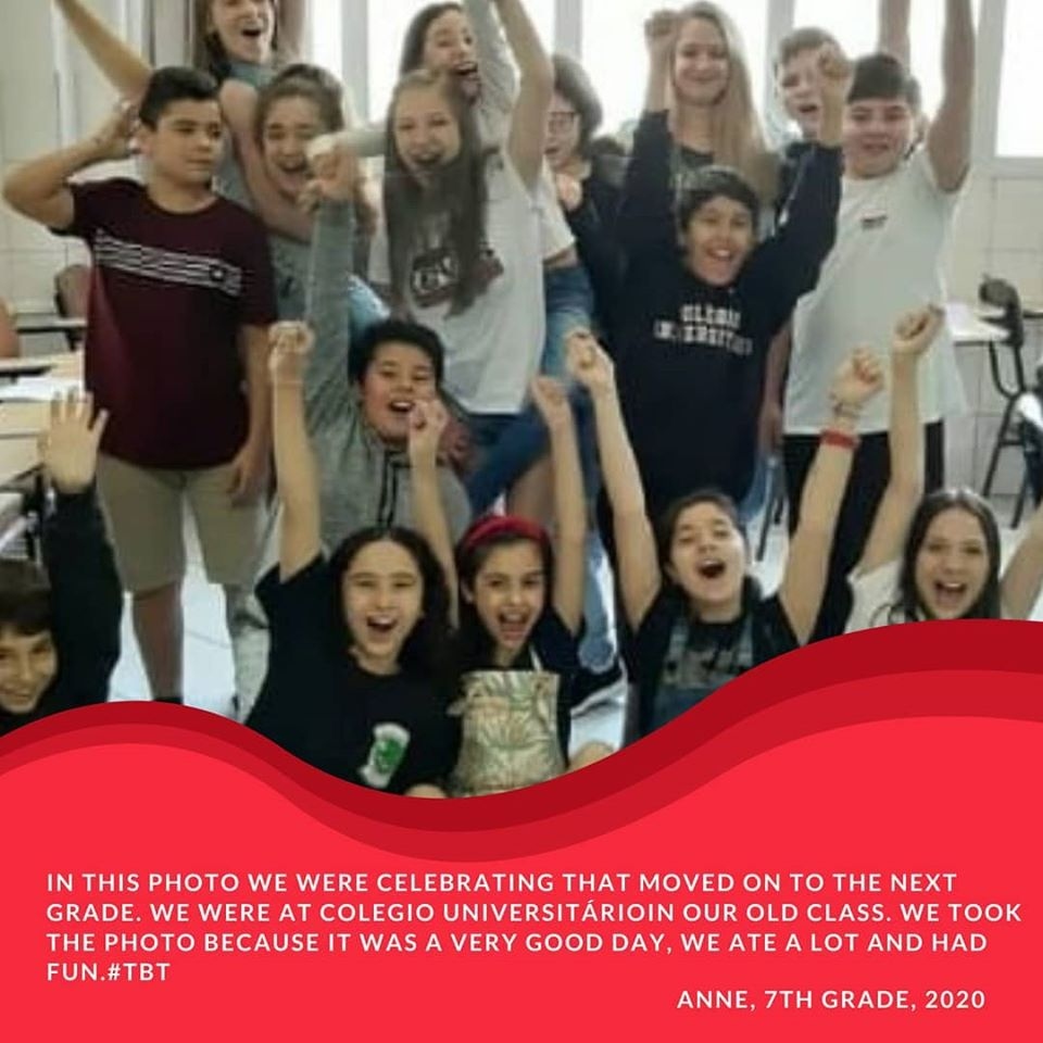 Hello! My name is Beatriz and I’m the English teacher of Colégio Universitário Criciúma. In these pictures you can see the 7th grade's project “Throwback Thursday, #TBT” that put together our studies of the Simple Past tense and our favorite memories from our school!
